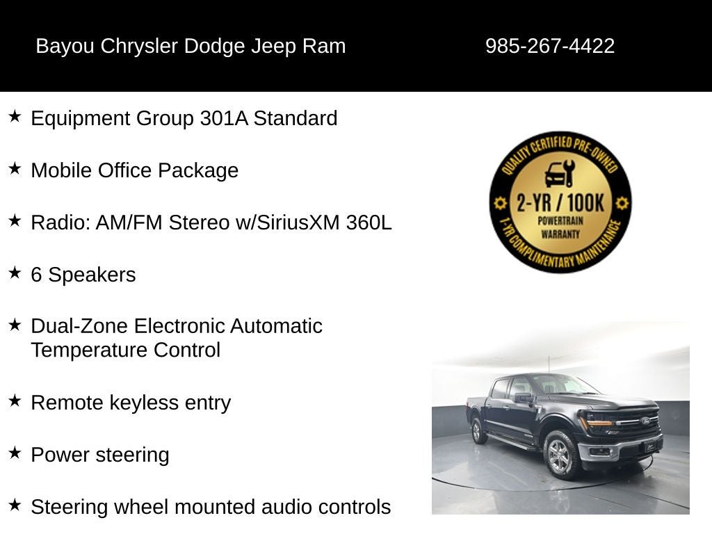 This F-150 has been meticulously inspected and certified by our expert technicians. With only 14,909 miles on the odometer, this truck is practically brand new and ready to take on any task you throw its way. Whether you're hauling heavy loads, towing your boat, or just cruising in comfort, this F-150 XLT has the power, capability, and features to make every drive an exceptional experience.