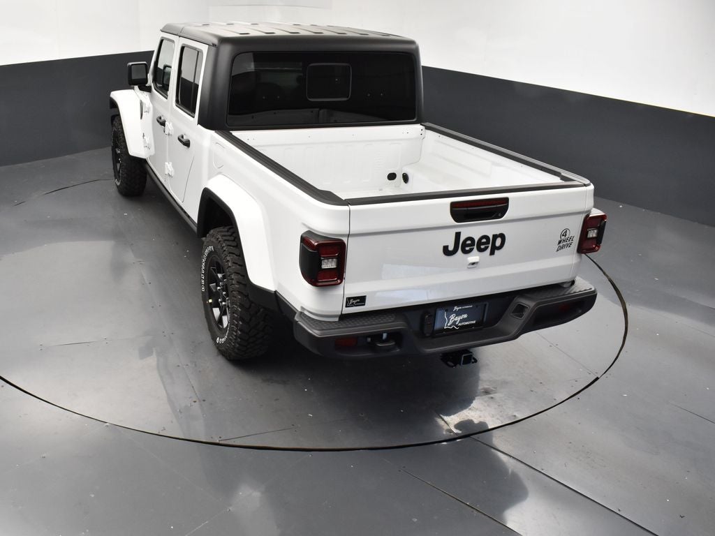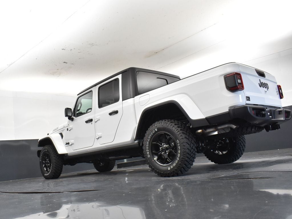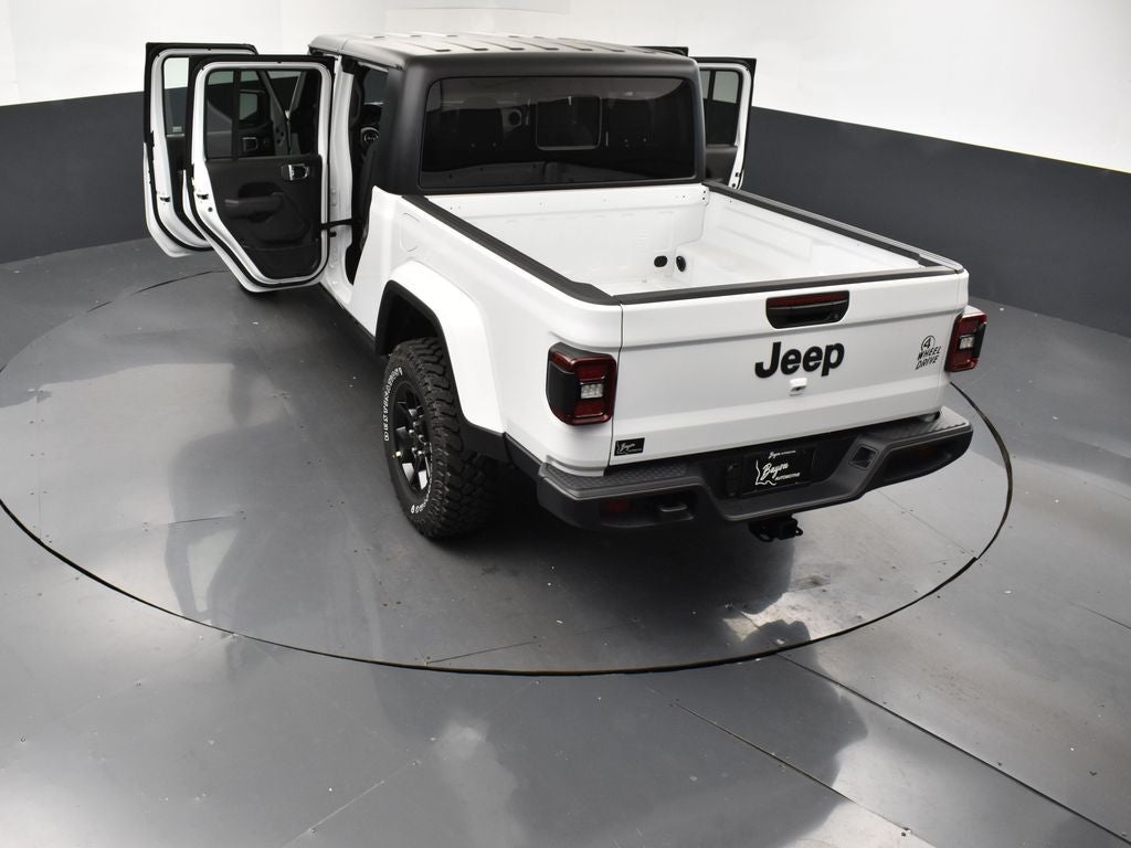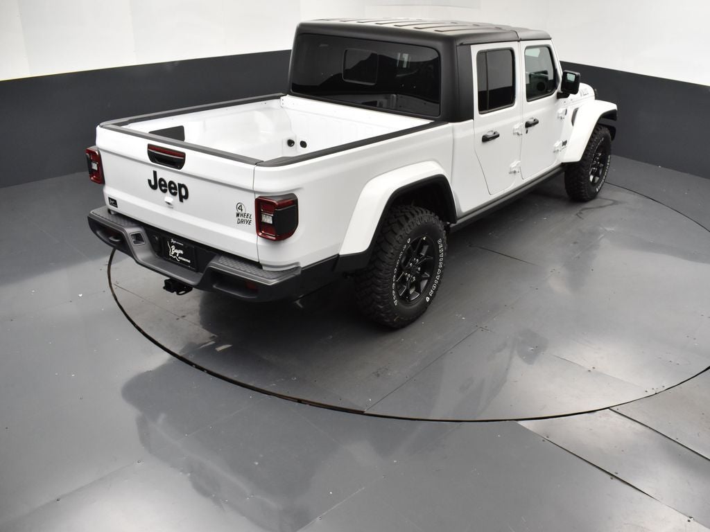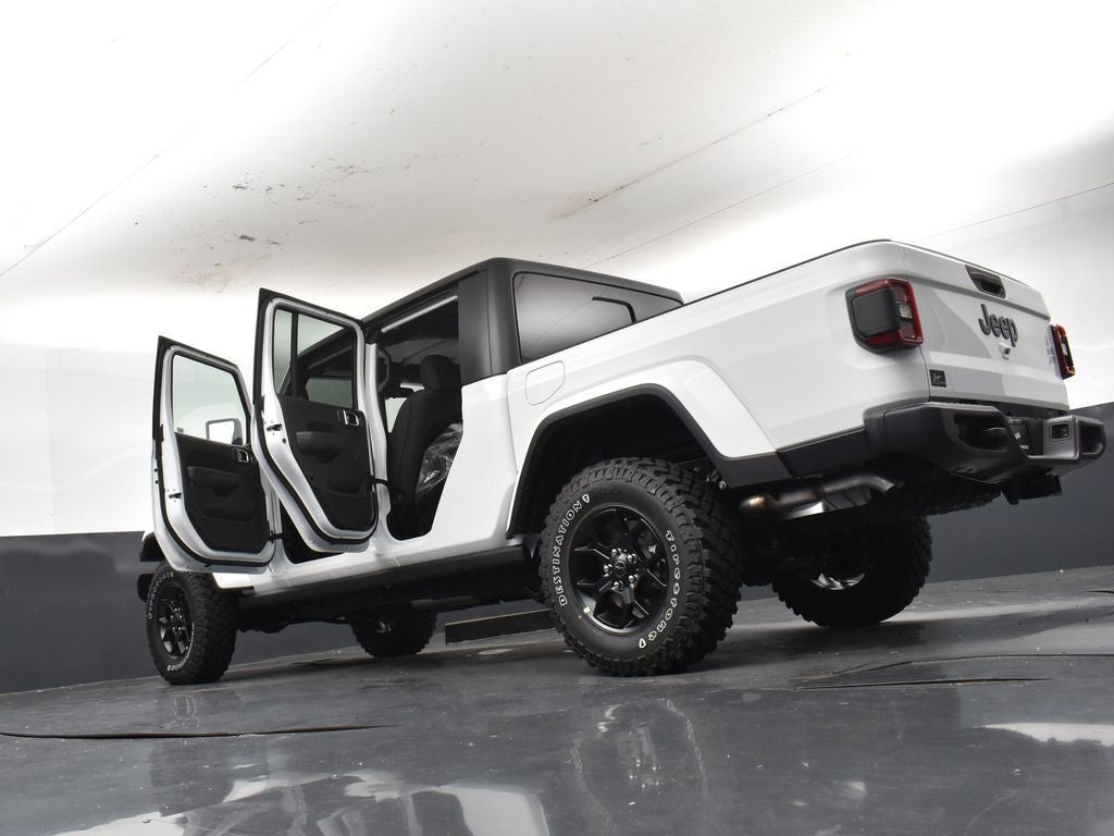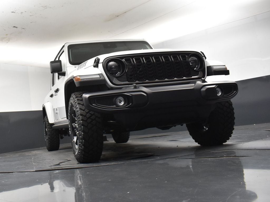 Gladiator Willys, 4D Crew Cab, 3.6L V6 24V VVT, 8-Speed Automatic, 4WD, Bright White Clearcoat, Black Cloth, 4-Wheel Disc Brakes, 4-Wheel Drive Decal, ABS brakes, Advanced Brake Assist, Air Conditioning w/Auto Temperature Control, Apple CarPlay/Android Auto, Automatic Headlamps, Auxiliary Switches, Black 3-Piece Hard Top, Black Grille, Body Color Fender Flares (2-Piece), Class IV Receiver Hitch, Cluster 7.0 TFT Color Display, Convenience Group, Corning Gorilla Glass, Daytime Running Lamp System, Daytime Running Lamps LED Accents, Deep Tint Sunscreen Windows, Dual front impact airbags, Dual front side impact airbags, E-Locker Rear Axle, Emergency/Assistance Call, Enhanced Adaptive Cruise Control, Freedom Panel Storage Bag, Front Door Locks 2-Door Passive Entry, Front Heavy Duty Red Accent Shock Absorbers, Front LED Fog Lamps, Full Speed Forward Collision Warning Plus, Heated Front Seats, Heated Steering Wheel, Heavy-Duty Engine Cooling, LED Premium Reflector Headlamps, LED Taillamps, Mold In Color Bumper w/Gloss Black, MOPAR All-Weather Slush Mats, Off-Road Plus Mode, Outside temperature display, Panic alarm, ParkView Rear Back-Up Camera, Power Heated Mirrors, Power steering, Power windows, Premium Wrapped Steering Wheel, Protection Sill Rails, Quick Order Package 24W Willys, Rear Heavy Duty Red Accent Shock Absorbers, Rear Sliding Window, Rear Window Defroster, Remote keyless entry, Remote Start System, Security Alarm, Speed control, Steering wheel mounted audio controls, Sun Visors w/Illuminated Vanity Mirrors, Trailer Hitch Zoom, Universal Garage Door Opener, Wheels: 17 x 7.5 Painted Black, Willys Hood Decal, Willys Suspension.