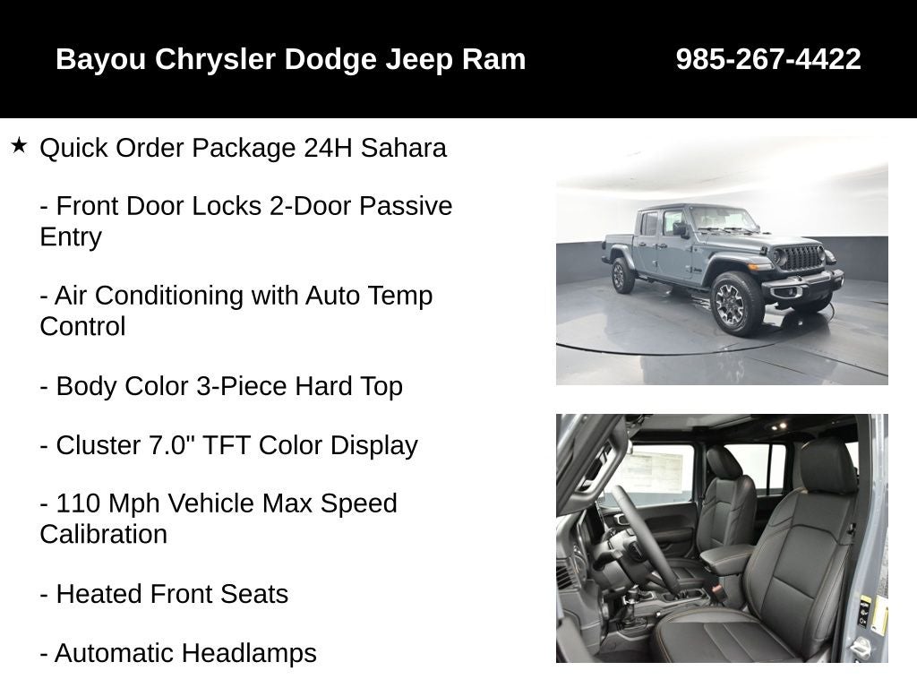 Experience the ultimate in capability and style with the 2026 Jeep Gladiator Sahara. This exceptional off-road warrior is ready to conquer any terrain, while offering a refined and comfortable ride that makes it equally at home on the highway.