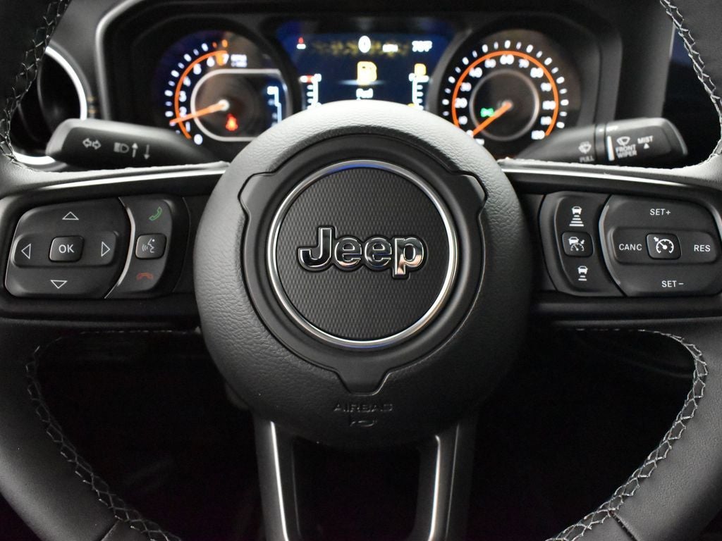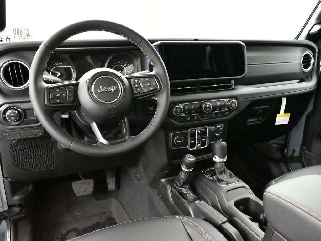 The Gladiator's striking exterior design, complete with bold Sahara badging and sleek 18-inch machined/painted gray wheels, turns heads wherever you go. Inside, the premium McKinley-trimmed seats and leather-wrapped steering wheel and shift knob create a refined and luxurious cabin, while the Uconnect 5 infotainment system with a 12.3-inch display keeps you connected and entertained.