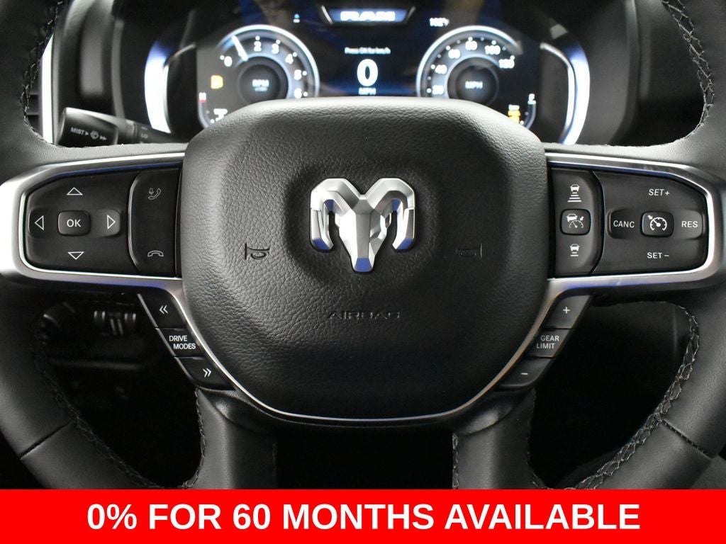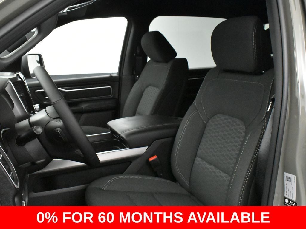1500 Big Horn/Lone Star, 4D Crew Cab, HEMI 5.7L V8 Multi Displacement VVT eTorque, 8-Speed Automatic, 4WD, Canyon Lake, Black w/Cloth Bucket Seats, 115V Auxiliary Power Outlet, 115V Auxiliary Rear Power Outlet, 12 Touchscreen Display, 2nd Row in Floor Storage Bins, 3 Rear Seat Head Restraints, 4 Way Front Headrests, 4-Wheel Disc Brakes, 400W Inverter, 4G LTE Wi-Fi Hot Spot, 9 Amplified Speakers with Subwoofer, ABS brakes, Accent Color Door Handles, Accent Color Premium Power Mirrors, Accent Color Tailgate Handle, Air Conditioning ATC with Dual Zone Control, Alloy wheels, Anti-Spin Differential Rear Axle, Apple CarPlay/Android Auto, Auto Power-Folding Mirrors, Auto-Dimming Exterior Driver Mirror, Auto-Dimming Rear-View Mirror, Big Horn Level 2 Equipment Group, Black Exterior Mirrors, Black Exterior Truck Badging, Black Headlamp Bezels, Black Interior Accents, Black Painted Exterior Mirrors Caps, Black Premium Power Mirrors, Black Tail Lamp Bezels, Body Color Fender Flares, Body Color Front Bumper, Body Color Rear Bumper with Step Pads, Bucket Seats, Center Console Parts Module, Cluster 7.0 TFT Color Display, Configurable Drive Mode, Connected Travel and Traffic Services, Connectivity - US/Canada, Convex Wide-Angle Exterior Mirror Insert, Deluxe Cloth Bucket Seats, Disassociated Touchscreen Display, Dual Exhaust with Black Tips, Dual front impact airbags, Dual front side impact airbags, Exterior Mirrors Courtesy Lamps, Exterior Mirrors with Heating Element, Exterior Mirrors with Supplemental Signals, Front Seat Back Map Pockets, Full Length Floor Console, Global Telematics Box Module, Glove Box Lamp, Google Android Auto, GPS Antenna Input, GPS Navigation, Grille Black Surround Black Mesh, HD Radio, Heated Front Seats, Heated Steering Wheel, Integrated Center Stack Radio, Integrated Voice Command with Bluetooth®, Leather Wrapped Steering Wheel, LED Dome Lamp with on/Off Switch, LED Footwell Lighting, Low tire pressure warning, Manual Adjust 4-Way Front Passenger Seat, Media Hub with 2 Charge Only USBs, Mopar Black Tubular Side Steps, Night Edition, Outside temperature display, Overhead LED Lamps, Panic alarm, ParkView Rear Back-Up Camera, Power 2-Way Driver Lumbar Adjust, Power Adjust 8-Way Driver Seat, Power Adjustable Pedals, Power door mirrors, Power steering, Power windows, Premium Overhead Console, Quick Order Package 27Z Big Horn, Radio: Uconnect 5 Navigation with 12.0 Display, RAM Grille Badge - Black, Rear 60/40 Folding Seat, Rear Center Armrest, Rear Power Sliding Window, Rear Window Defroster, Remote keyless entry, Remote Tailgate Release, Security Alarm, SiriusXM Radio Service, SiriusXM with 360L, Speed control, Steering Wheel Mounted Audio Controls, Sun Visors with Illuminated Vanity Mirrors, Tilt steering wheel, Trailer Brake Control, Universal Garage Door Opener, USB Host Flip, Wheels: 20 x 9.0 Aluminum Painted Clad.