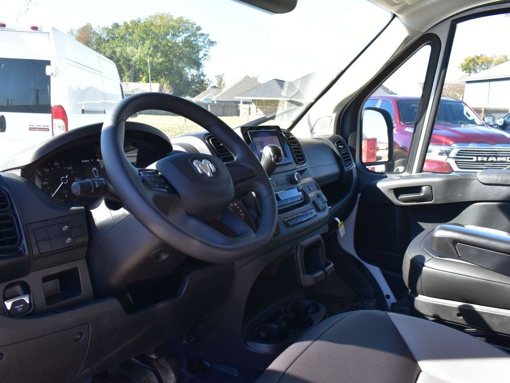 ProMaster 2500 High Roof, 3D Cargo Van, 3.6L V6 24V VVT, 9-Speed Automatic, FWD, Bright White Clearcoat, Black w/Cloth Bucket Seats or Vinyl Bucket Seats, 100 Amp Battery, 115V Auxiliary Power Outlet, 12V Rear Auxiliary Power Outlet, 4 Speakers, 4-Way Manual Adjust Front Passenger Seat, 4-Wheel Disc Brakes, ABS brakes, Air Conditioning, Apple CarPlay/Android Auto, Class IV Receiver Hitch, Exterior Mirrors w/Supplemental Signals, Low tire pressure warning, Outside temperature display, Overhead airbag, ParkSense Rear Park Assist System, ParkView Rear Back-Up Camera, Passenger Bucket Seat, Power Group, Power steering, Power windows, Quick Order Package 22B Tradesman, Radio: Uconnect 5 w/7 Display, Remote keyless entry, Steering wheel mounted audio controls, Wheel Center Cap, Wheels: 16 x 6.0 Steel.