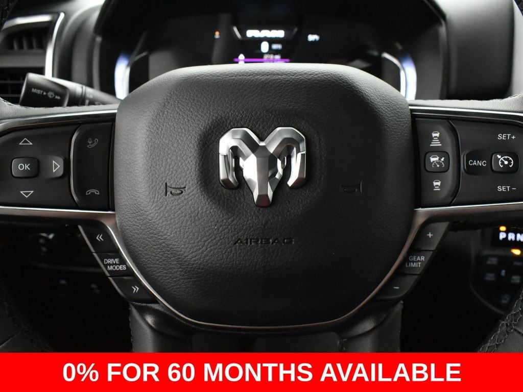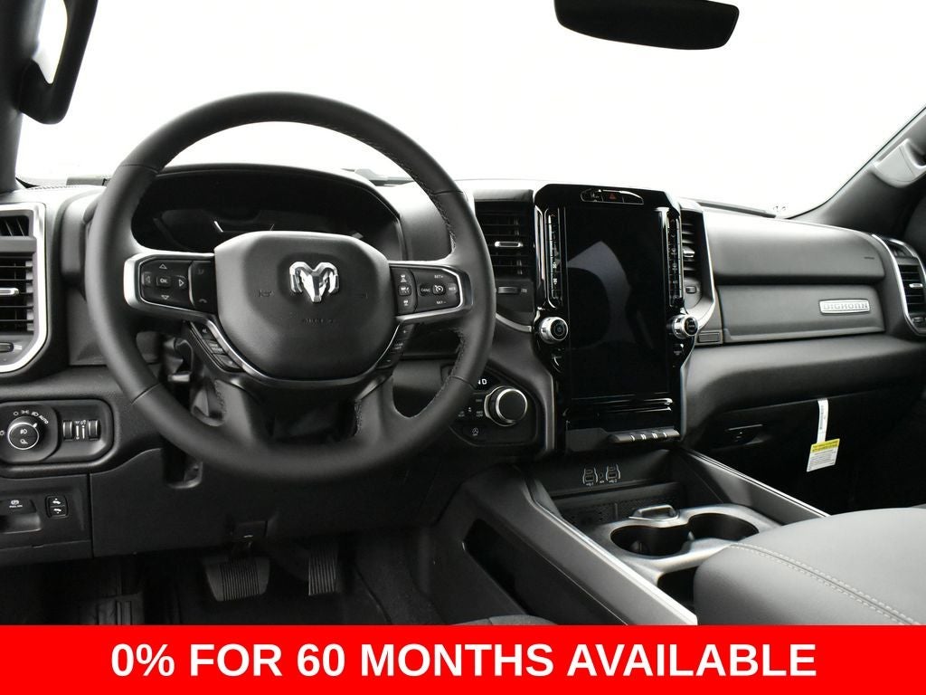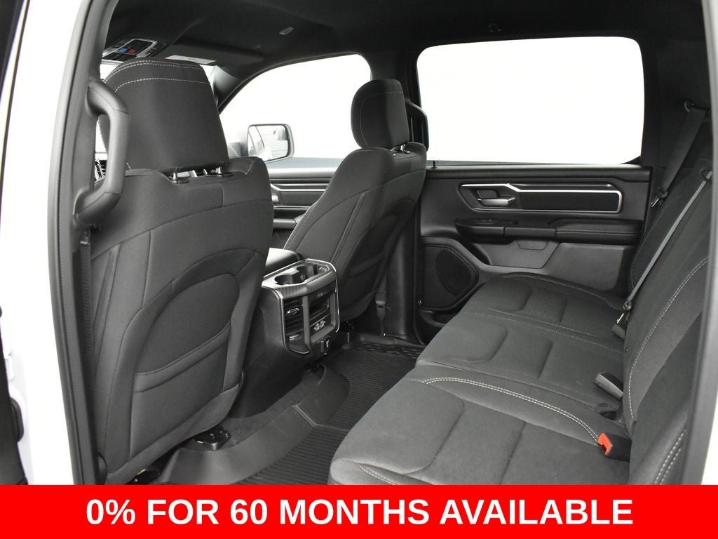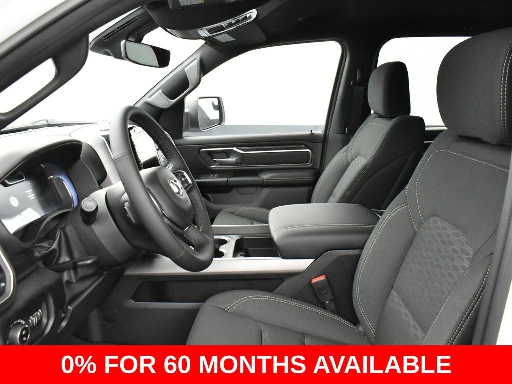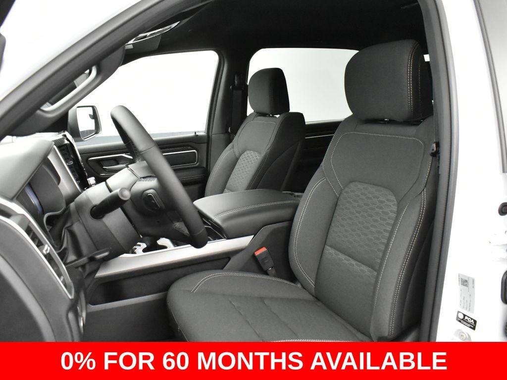 1500 Big Horn/Lone Star, 4D Crew Cab, HEMI 5.7L V8 Multi Displacement VVT eTorque, 8-Speed Automatic, 4WD, Bright White Clearcoat, Black w/Deluxe Cloth Bucket Seats, 115V Auxiliary Power Outlet, 115V Auxiliary Rear Power Outlet, 12 Touchscreen Display, 2nd Row In Floor Storage Bins, 3 Rear Seat Head Restraints, 4 Way Front Headrests, 4-Wheel Disc Brakes, 400W Inverter, 4G LTE Wi-Fi Hot Spot, 9 Amplified Speakers w/Subwoofer, ABS brakes, Accent Color Door Handles, Accent Color Premium Power Mirrors, Accent Color Tailgate Handle, Air Conditioning ATC w/Dual Zone Control, Alloy wheels, Anti-Spin Differential Rear Axle, Apple CarPlay, Auto Power-Folding Mirrors, Auto-Dimming Exterior Driver Mirror, Auto-Dimming Rear-View Mirror, Big Horn Level 2 Equipment Group, Black Exterior Mirrors, Black Exterior Truck Badging, Black Headlamp Bezels, Black Interior Accents, Black Painted Exterior Mirrors Caps, Black Premium Power Mirrors, Black Tail Lamp Bezels, Body Color Fender Flares, Body Color Front Bumper, Body Color Rear Bumper w/Step Pads, Bucket Seats, Center Console Parts Module, Cluster 7.0 TFT Color Display, Configurable Drive Mode, Connected Travel & Traffic Services, Connectivity - US/Canada, Convex Wide-Angle Exterior Mirror Insert, Deluxe Cloth Bucket Seats, Disassociated Touchscreen Display, Dual Exhaust w/Black Tips, Dual front impact airbags, Dual front side impact airbags, Exterior Mirrors Courtesy Lamps, Exterior Mirrors w/Heating Element, Exterior Mirrors w/Supplemental Signals, Front Seat Back Map Pockets, Full Length Floor Console, Global Telematics Box Module (TBM), Glove Box Lamp, Google Android Auto, GPS Antenna Input, GPS Navigation, Grille Black Surround Black Mesh, HD Radio, Heated Front Seats, Heated Steering Wheel, Integrated Center Stack Radio, Integrated Voice Command w/Bluetooth®, Leather Wrapped Steering Wheel, LED Dome Lamp w/On/Off Switch, LED Footwell Lighting, Low tire pressure warning, Manual Adjust 4-Way Front Passenger Seat, Media Hub w/2 Charge Only USBs, Mopar Black Tubular Side Steps, Night Edition, Outside temperature display, Overhead LED Lamps, Panic alarm, ParkView Rear Back-Up Camera, Power 2-Way Driver Lumbar Adjust, Power Adjust 8-Way Driver Seat, Power Adjustable Pedals, Power door mirrors, Power steering, Power windows, Premium Overhead Console, Quick Order Package 27Z Big Horn, Radio: Uconnect 5 Nav w/12.0 Display, RAM Grille Badge - Black, Rear 60/40 Folding Seat, Rear Center Armrest, Rear Power Sliding Window, Rear Window Defroster, Remote keyless entry, Remote Tailgate Release, Security Alarm, SiriusXM Radio Service, SiriusXM w/360L, Speed control, Steering Wheel Mounted Audio Controls, Sun Visors w/Illuminated Vanity Mirrors, Tilt steering wheel, Universal Garage Door Opener, USB Host Flip, Wheels: 20 x 9.0 Aluminum Painted Clad, Wheels: 20 x 9 Aluminum Chrome Clad (WRK).