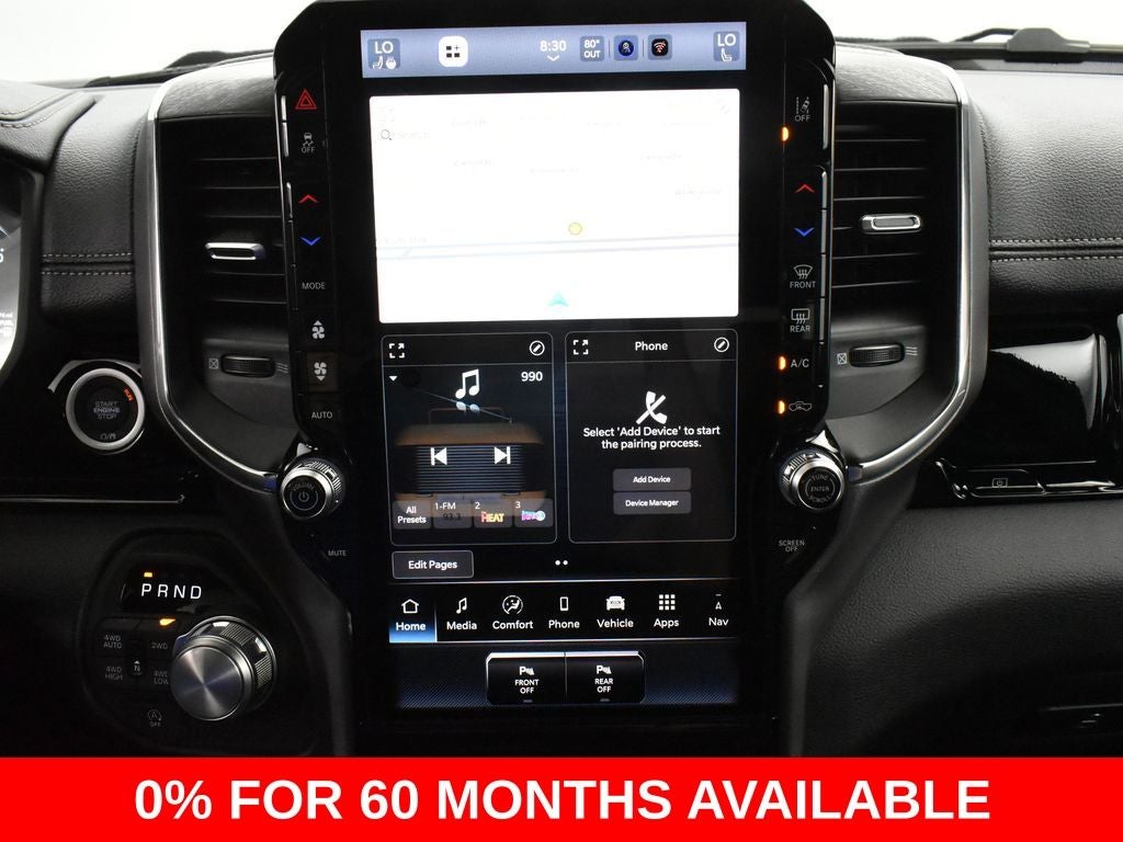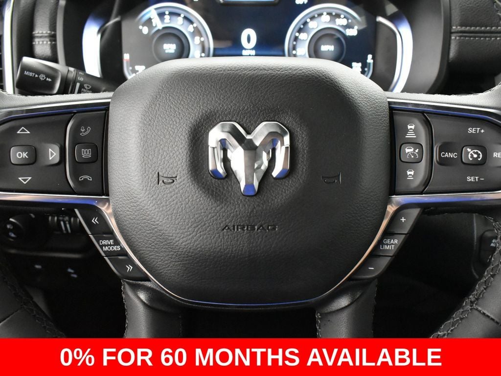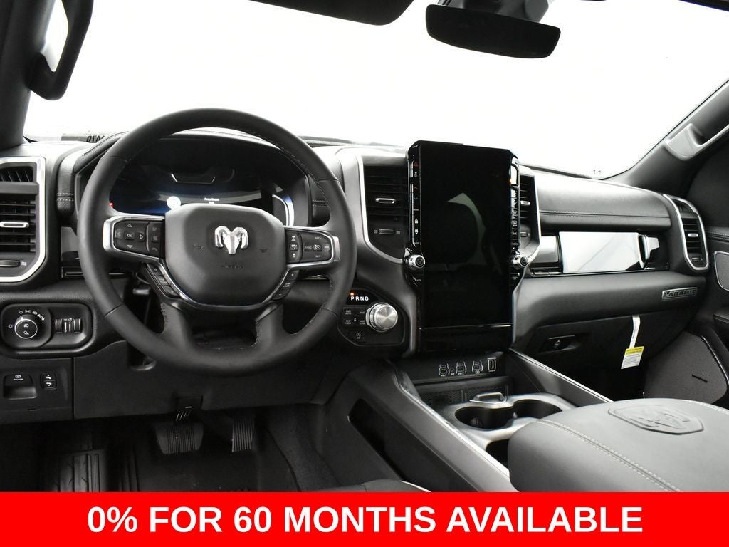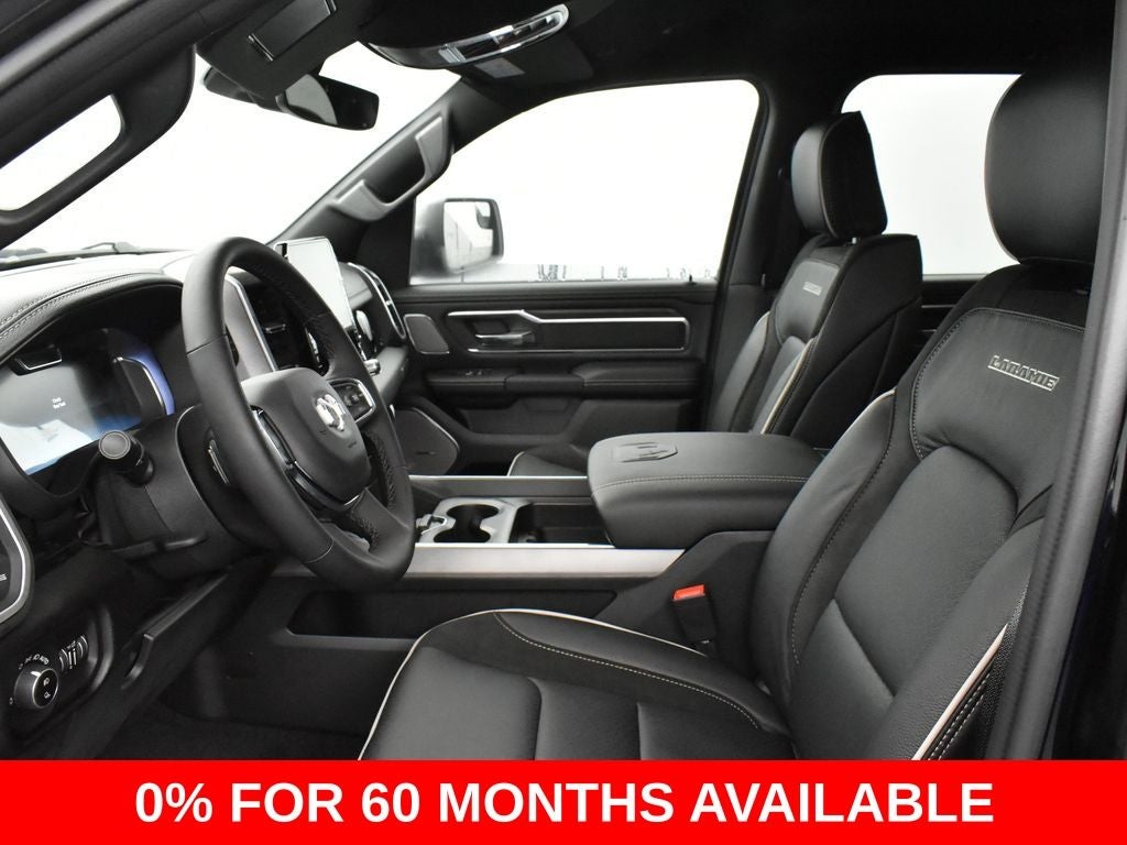 1500 Laramie Night Edition, 4D Crew Cab, 3.0L I6, 8-Speed Automatic, 4WD, Diamond Black Crystal Pearlcoat, Black w/Leather Trimmed Bucket Seats, 14.4 Touchscreen Display, 4-Wheel Disc Brakes, 4G LTE Wi-Fi Hot Spot, ABS brakes, Accent Color Door Handles, Accent Color Premium Power Mirrors, Accent Color Tailgate Handle, Air Conditioning, Alloy wheels, Anti-Spin Differential Rear Axle, Apple CarPlay, Apple CarPlay/Android Auto, Auto Power-Folding Mirrors, Auto-Dimming Exterior Driver Mirror, Black Exterior Truck Badging, Black Headlamp Bezels, Black Interior Accents, Black Painted Exterior Mirrors Caps, Black Tail Lamp Bezels, Body Color Front Bumper, Body Color Rear Bumper w/Step Pads, Cluster 12 TFT Color Display, Connected Travel & Traffic Services, Connectivity - US/Canada, Convex Wide-Angle Exterior Mirror Insert, Disassociated Touchscreen Display, Dual Exhaust w/Black Tips, Dual front impact airbags, Dual front side impact airbags, Dual Wireless Charging Pad, Exterior Mirrors Approach Lamps, Exterior Mirrors Courtesy Lamps, Exterior Mirrors w/Heating Element, Exterior Mirrors w/Memory, Exterior Mirrors w/Supplemental Signals, Front Passenger Interactive Display, Global Telematics Box Module (TBM), Google Android Auto, GPS Antenna Input, GPS Navigation, Grille Surround 3 Black Texture 2 Black, harman/kardon 19 Speaker Premium Sound, HD Radio, Heated front seats, Heated rear seats, Integrated Center Stack Radio, Integrated Voice Command w/Bluetooth®, Laramie Level 2 Equipment Group, Leather steering wheel, Low tire pressure warning, Night Edition, Outside temperature display, Pirelli Brand Tires, Power door mirrors, Power driver seat, Power steering, Power Tailgate, Power windows, Proximity Approach/Departure Lamps, Quick Order Package 21H Laramie, Radio: Uconnect 5 Nav w/14.4 Display, Rain Sensitive Windshield Wipers, RAM Grille Badge - Black, Remote keyless entry, Secondary Active Grille Shutters, SiriusXM Radio Service, SiriusXM w/360L, Smartphone As A Key Capable, Sport Performance Hood, Steering wheel mounted audio controls, USB Host Flip, Ventilated front seats, Wheels: 22 x 9 Forged Aluminum.