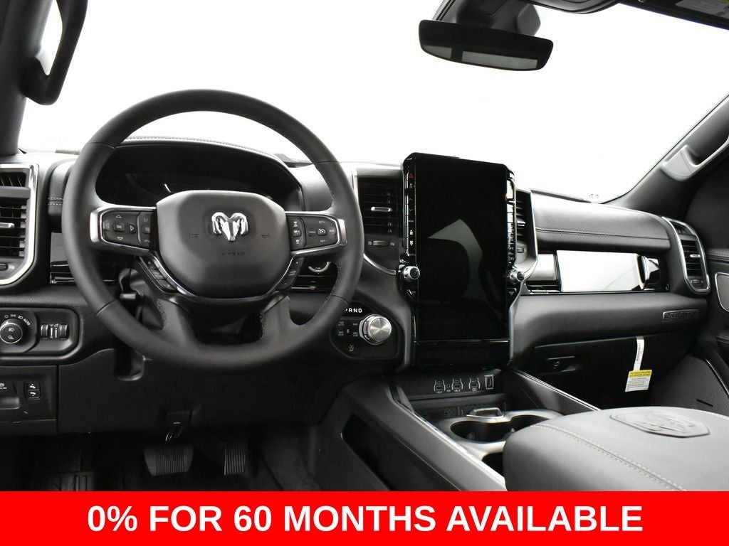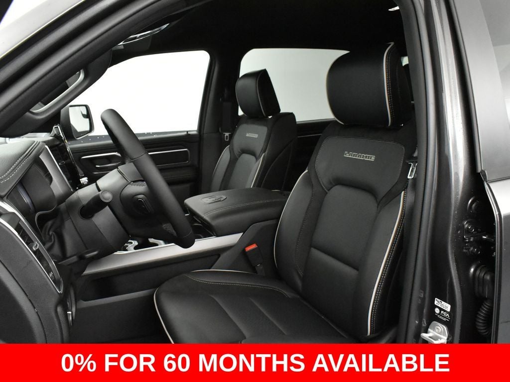 1500 Laramie, 4D Crew Cab, 3.0L I6, 8-Speed Automatic, 4WD, Granite Crystal Metallic Clearcoat, Black w/Leather Trimmed Bucket Seats, 14.4 Touchscreen Display, 4G LTE Wi-Fi Hot Spot, Accent Color Door Handles, Accent Color Premium Power Mirrors, Accent Color Tailgate Handle, Anti-Spin Differential Rear Axle, Apple CarPlay, Auto Power-Folding Mirrors, Auto-Dimming Exterior Driver Mirror, Black Exterior Truck Badging, Black Headlamp Bezels, Black Interior Accents, Black Painted Exterior Mirrors Caps, Black Tail Lamp Bezels, Body Color Front Bumper, Body Color Rear Bumper w/Step Pads, Cluster 12 TFT Color Display, Connected Travel & Traffic Services, Connectivity - US/Canada, Convex Wide-Angle Exterior Mirror Insert, Disassociated Touchscreen Display, Dual Exhaust w/Black Tips, Dual Wireless Charging Pad, Exterior Mirrors Approach Lamps, Exterior Mirrors Courtesy Lamps, Exterior Mirrors w/Heating Element, Exterior Mirrors w/Memory, Exterior Mirrors w/Supplemental Signals, Front Passenger Interactive Display, Global Telematics Box Module (TBM), Google Android Auto, GPS Antenna Input, GPS Navigation, Grille Surround 3 Black Texture 2 Black, harman/kardon 19 Speaker Premium Sound, HD Radio, Integrated Center Stack Radio, Integrated Voice Command w/Bluetooth®, Laramie Level 2 Equipment Group, Night Edition, Pirelli Brand Tires, Power Tailgate, Proximity Approach/Departure Lamps, Quick Order Package 21H Laramie, Radio: Uconnect 5 Nav w/14.4 Display, Rain Sensitive Windshield Wipers, RAM Grille Badge - Black, Secondary Active Grille Shutters, SiriusXM Radio Service, SiriusXM w/360L, Smartphone As A Key Capable, Sport Performance Hood, USB Host Flip, Wheels: 22 x 9 Forged Aluminum.