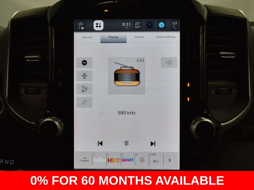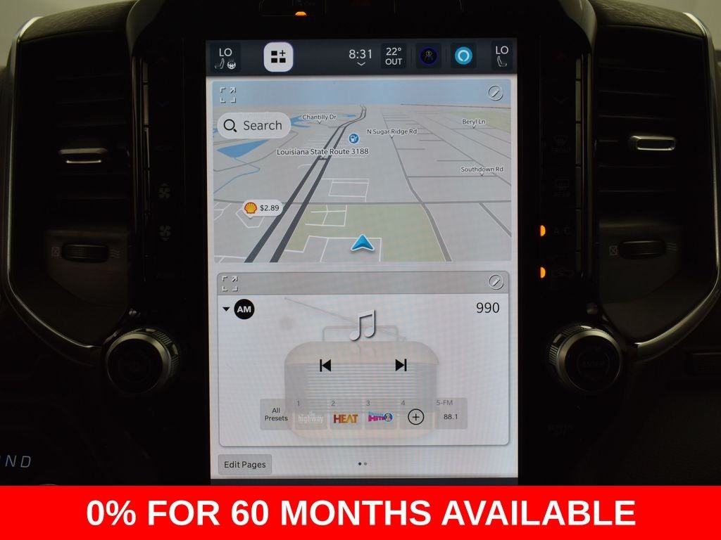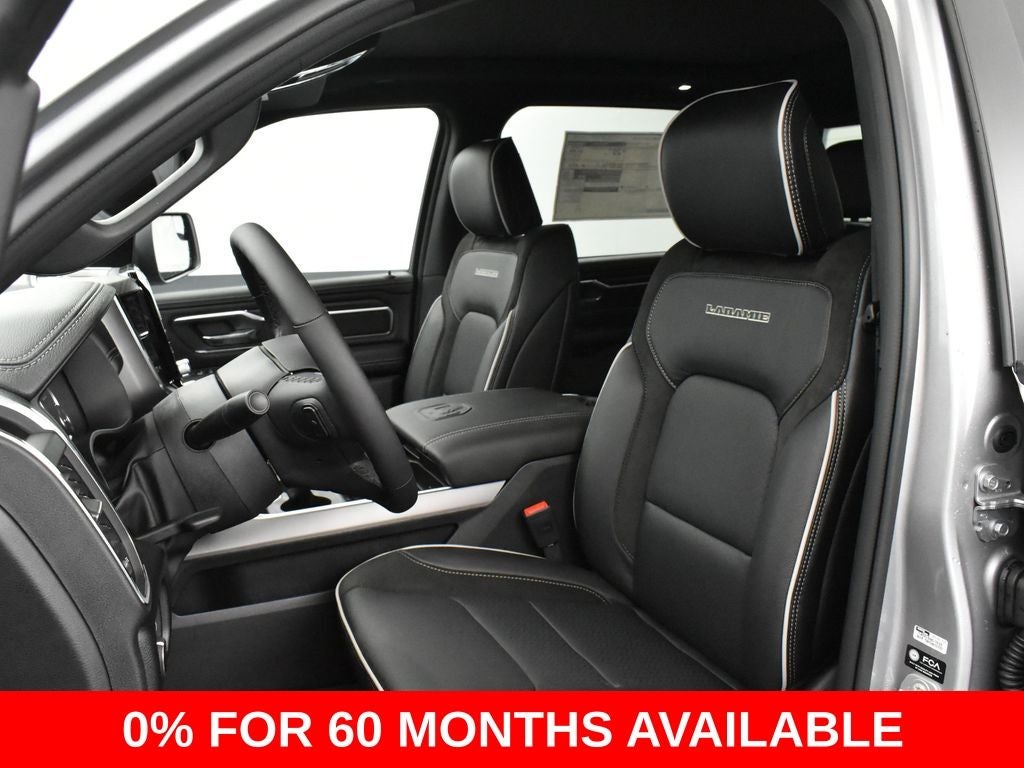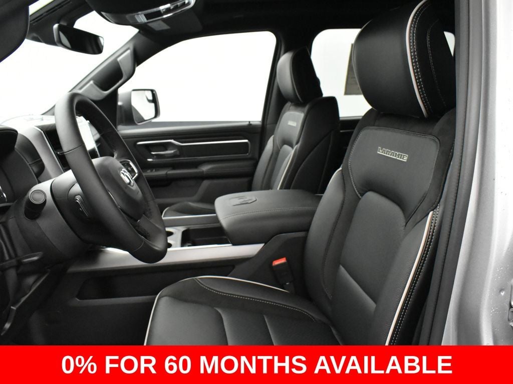 1500 Laramie, 4D Crew Cab, 3.0L I6, 8-Speed Automatic, 4WD, Billet Silver Metallic Clearcoat, Black w/Leather Trimmed Bucket Seats, 10 Speakers, 4-Wheel Disc Brakes, ABS brakes, Accent Color Premium Power Mirrors, Air Conditioning, Alloy wheels, Auto Power-Folding Mirrors, Auto-Dimming Exterior Driver Mirror, Black Painted Exterior Mirrors Caps, Body Color Front Bumper, Body Color Rear Bumper w/Step Pads, Convex Wide-Angle Exterior Mirror Insert, Dome Dual LED Reading Lamp, Dual front impact airbags, Dual front side impact airbags, Dual-Pane Panoramic Sunroof, Exterior Mirrors Courtesy Lamps, Exterior Mirrors w/Heating Element, Exterior Mirrors w/Memory, Exterior Mirrors w/Supplemental Signals, Front dual zone A/C, Grille Surround 3 Body Color Tex 4 Chrome, Laramie Level 1 Equipment Group, Laramie Southwest Edition, LED Dome/Reading Lamp, Low tire pressure warning, Memory seat, MOPAR Lockable Console Storage (DISC), Power Deployable Running Boards, Power driver seat, Power steering, Power windows, Quick Order Package 21H Laramie, Radio: Uconnect 5 Nav w/12.0 Display, Rain Sensitive Windshield Wipers, RAM Grille Badge - Chrome, Remote keyless entry, Remote Tailgate Release, Secondary Active Grille Shutters, Steering wheel mounted audio controls, Tow Hooks, Trailer Brake Control, Wheels: 20 x 9 Premium Paint/Polish, Wireless Charging Pad.