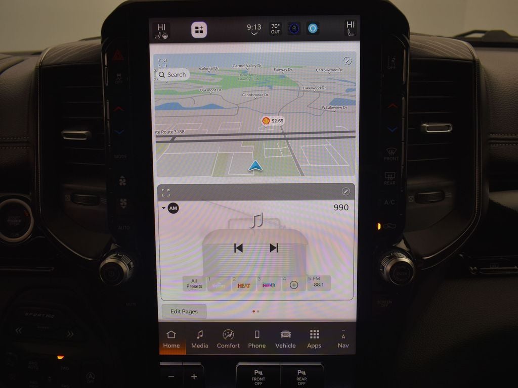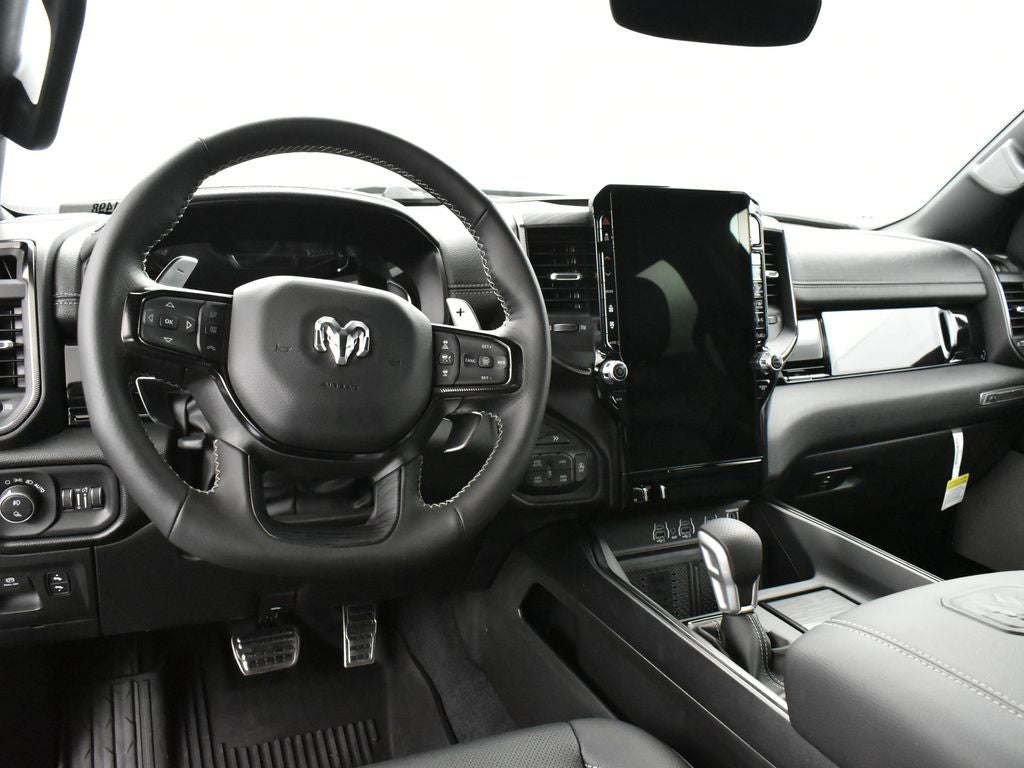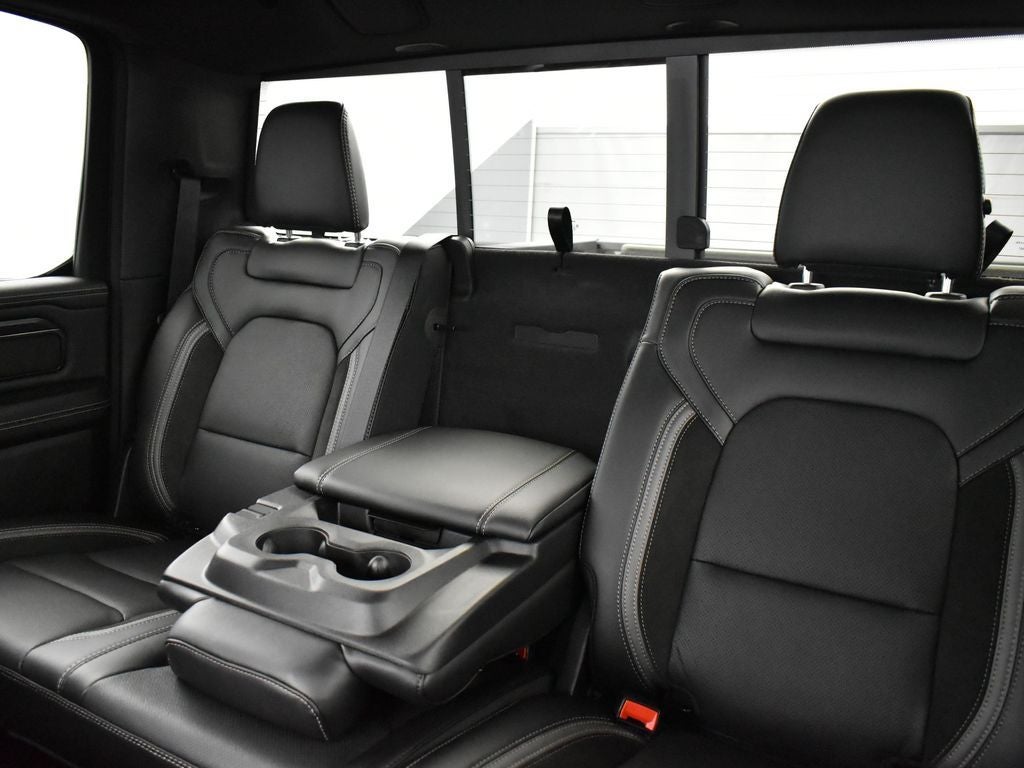 1500 Rebel, 4D Crew Cab, 3.0L I6, 8-Speed Automatic, 4WD, Canyon Lake, Black Leather, 115V Auxiliary Rear Power Outlet, 12-Way/1-Way Trailer Connector, 14.4 Touchscreen Display, 2-Door Passive Entry, Front Door Locks, 4 Way Front Headrests, 4G LTE Wi-Fi Hot Spot, Accent Color Door Handles, Accent Color Premium Power Mirrors, Accent Color Tailgate Handle, Active Driving Assist System, Advanced Safety Group II, Apple CarPlay, Auto Power-Folding Mirrors, Auto-Dimming Exterior Driver Mirror, Black Painted Exterior Mirrors Caps, Bucket Seats, Connected Travel & Traffic Services, Connectivity - US/Canada, Convex Wide-Angle Exterior Mirror Insert, Disassociated Touchscreen Display, Driver Seat Memory, Drowsy Driver Detection, Dual Wireless Charging Pad, Evasive Steer Assist, Exterior Mirrors Approach Lamps, Exterior Mirrors Courtesy Lamps, Exterior Mirrors w/Heating Element, Exterior Mirrors w/Memory, Exterior Mirrors w/Supplemental Signals, Floor Console, Front Passenger Interactive Display, Front Seat Back Map Pockets, G/T Decal, G/T Exhaust, G/T Package, Global Telematics Box Module (TBM), Google Android Auto, GPS Antenna Input, GPS Navigation, GT Interior Theme, harman/kardon 19 Speaker Premium Sound, HD Radio, Heated Front Seats, Heated Second Row Seats, Heated Steering Wheel, Integrated Center Stack Radio, Integrated Voice Command w/Bluetooth®, Intersection Collision Assist System, Leather Wrapped Shift Knob, Leather-Wrapped Steering Wheel, Leather/Vinyl Bucket Seats, Media Hub w/2 Charge Only USBs, MOPAR Bright Pedal Kit, Off-Road Information Pages, Performance Pages, Power 2-Way Passenger Lumbar Adjust, Power 4-Way Driver Lumbar Adjust, Power 4-Way Passenger Lumbar Adjust, Power Adjust 8-Way Driver Seat, Power Adjust 8-Way Front Passenger Seat, Power Adjustable Pedals w/Memory, Power Tailgate, Proximity Approach/Departure Lamps, Quick Order Package 21W Rebel, Radio: Uconnect 5 Nav w/14.4 Display, Radio/Driver Seat/Mirrors/Pedals Memory, Rain Sensitive Windshield Wipers, Rear 60/40 Folding Split Recline Seat, Rear Window Defroster, Rebel Level 2 Equipment Group, Security Alarm, SiriusXM Radio Service, SiriusXM w/360L, Smartphone As A Key Capable, Steering Wheel Mounted Shift Control, Surround View Camera System, Traffic Sign Recognition, Under Seat Lighting, USB Host Flip, Ventilated Front Seats.
