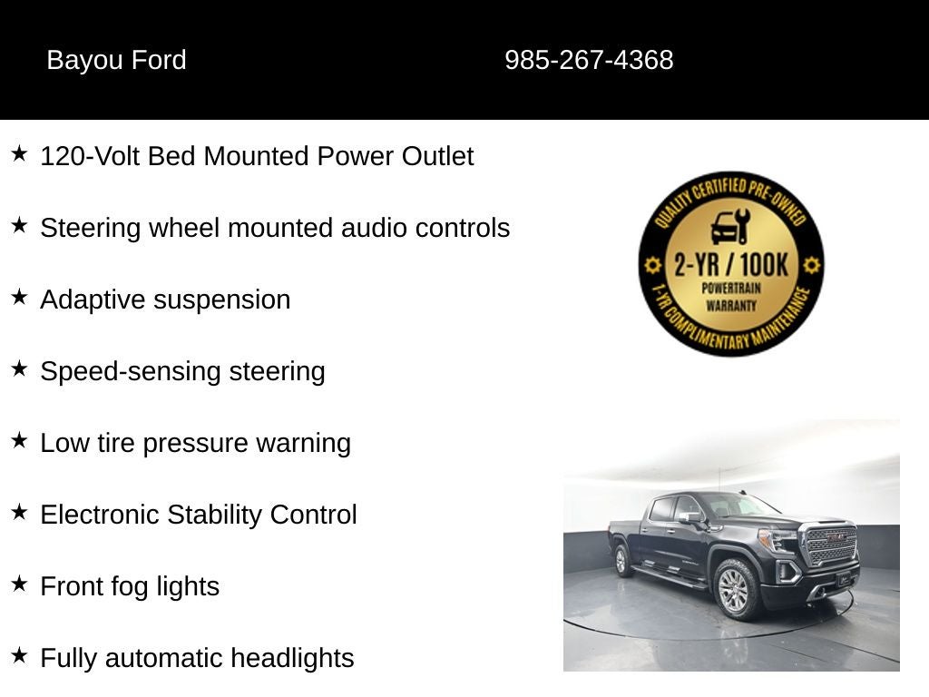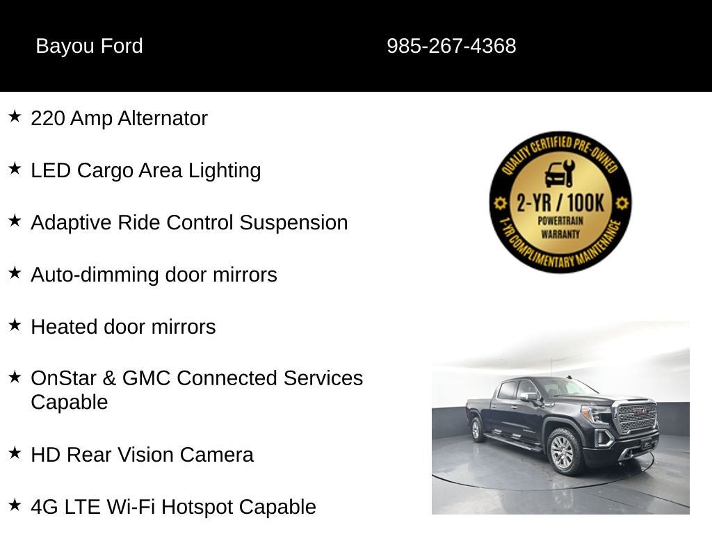 This Sierra 1500 Denali is more than just a work-ready truck—it's a sophisticated and versatile companion that seamlessly blends power, technology, and luxury. The turbocharged diesel engine delivers exceptional efficiency and ample torque, while the premium Bose audio system and advanced infotainment system keep you entertained and connected on the road.