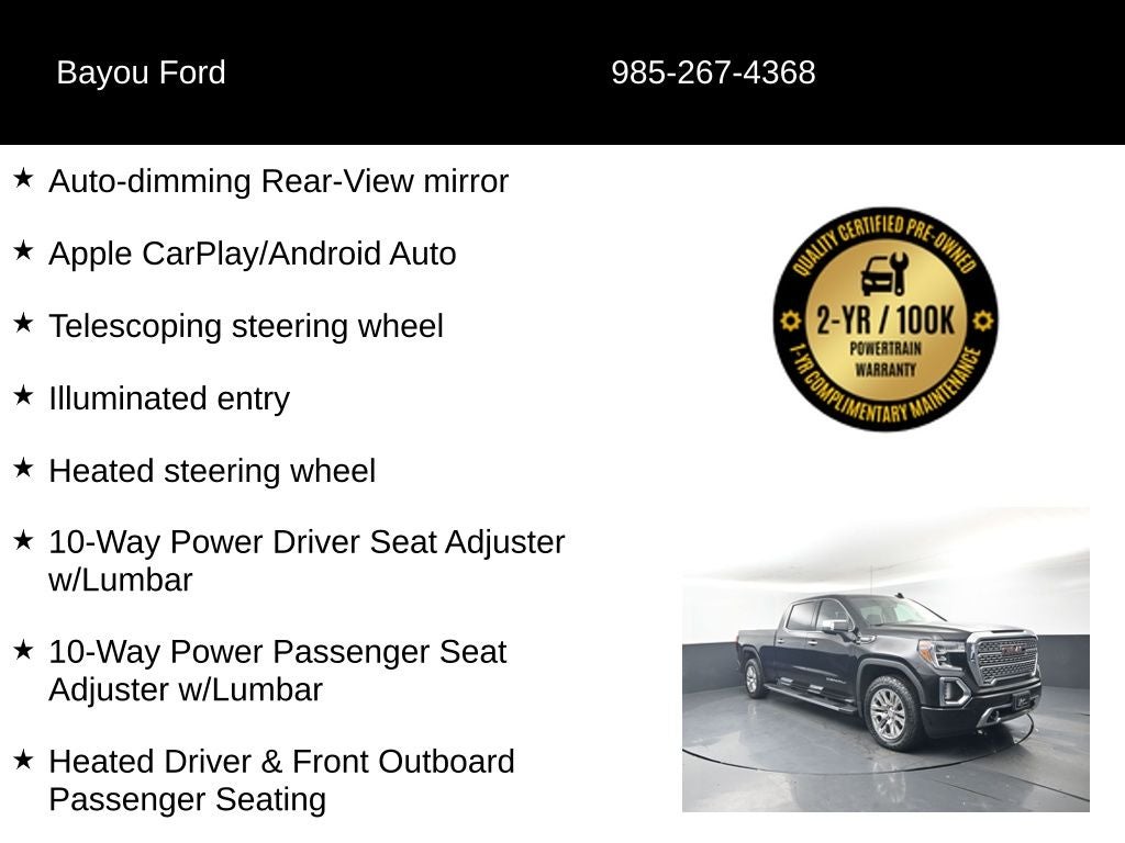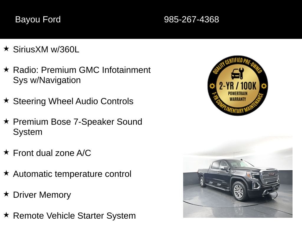 This Sierra 1500 Denali has been meticulously inspected and certified to ensure it meets the highest standards of quality and performance. With low mileage and a wealth of premium features, this exceptional truck is ready to take on your toughest tasks and longest adventures.