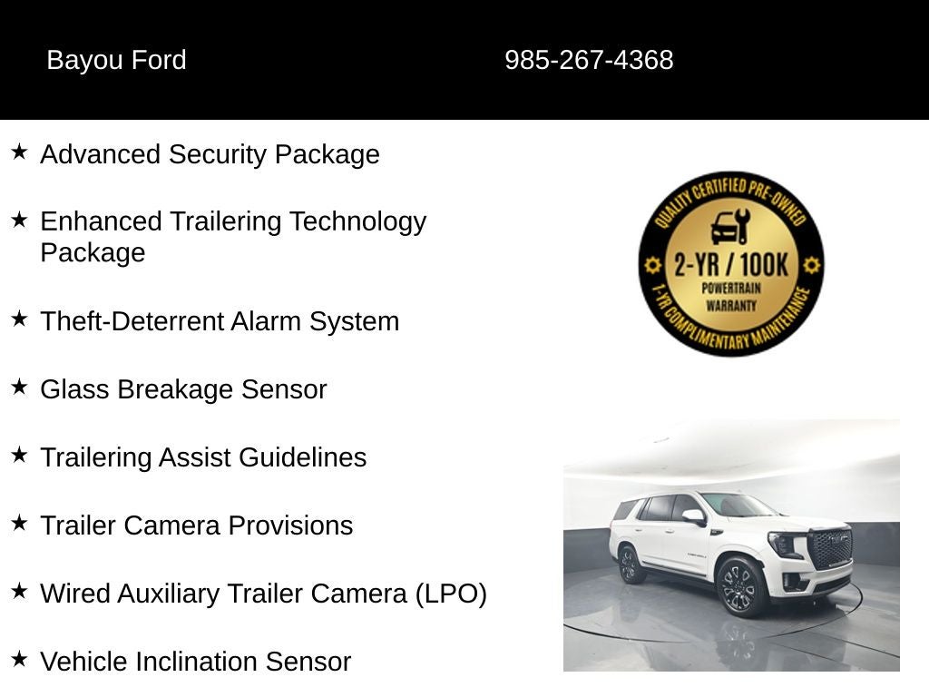 Certified by Bayou Automotive, this Yukon Denali Ultimate has undergone a rigorous 100-point inspection to ensure it meets our high standards of quality and reliability. With low mileage and a comprehensive warranty, this exceptional SUV is ready to provide years of dependable service.